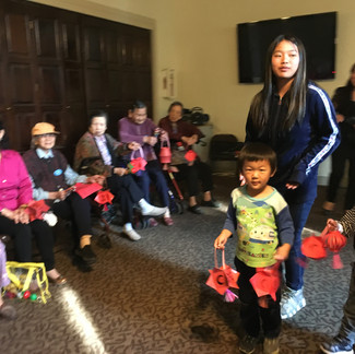 On Wednesday, October 17th, a group of 12 children and teens greeted 35 seniors at Hotel Oakland Village. First, the adorable three-year-old Philip sang nursery songs. Diana performed a dance to “Beautiful Mind” by Travis King. Sophia danced hip-hop dance with multiple pieces of music combined. Andy and Sam demonstrated judo martial arts. Susanna played the song “Jasmine Flower” on the violin, which had a deep connection with the seniors since they all knew the song well. After our performances, the seniors also wanted to join in with the music and interactivity, so a senior led a sing-along, where the other seniors could clap along and play handheld percussion instruments. The music therapy program ended with each senior receiving a handmade paper lantern, made by the students.