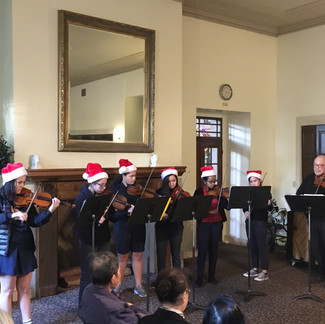 On December 12, 2018, Seagull Leadership International and the seniors of Hotel Oakland welcomed Mr. Cohen and the Holy Names High School Orchestra. The orchestra set up quickly and started off by teaching some seniors how to play the violin. The seniors were fascinated by learning how to play the instruments. Afterwards, the orchestra played two songs: Allegro in D for Strings (From the Concerto for two trumpets) by Antonio Vivaldi, and Georg Philipp Telemann’s Concerto for 4 Violins. The seniors enjoyed the classical music of Vivaldi and Telemann, but the orchestra had another surprise for them. They passed out packets of paper with song lyrics to many different Christmas and holiday-related songs. The seniors sang along with the orchestra and had a great time.
